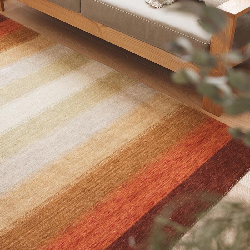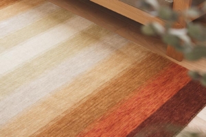ておりシリーズの上質さをそのままに、長めの毛足で触り心地により一層こだわり、ギャッベのような厚みとふんわり感が得られます。手結びで織り上げる美しい光沢と水彩画のような繊細な色彩が素敵なシリーズです。