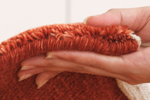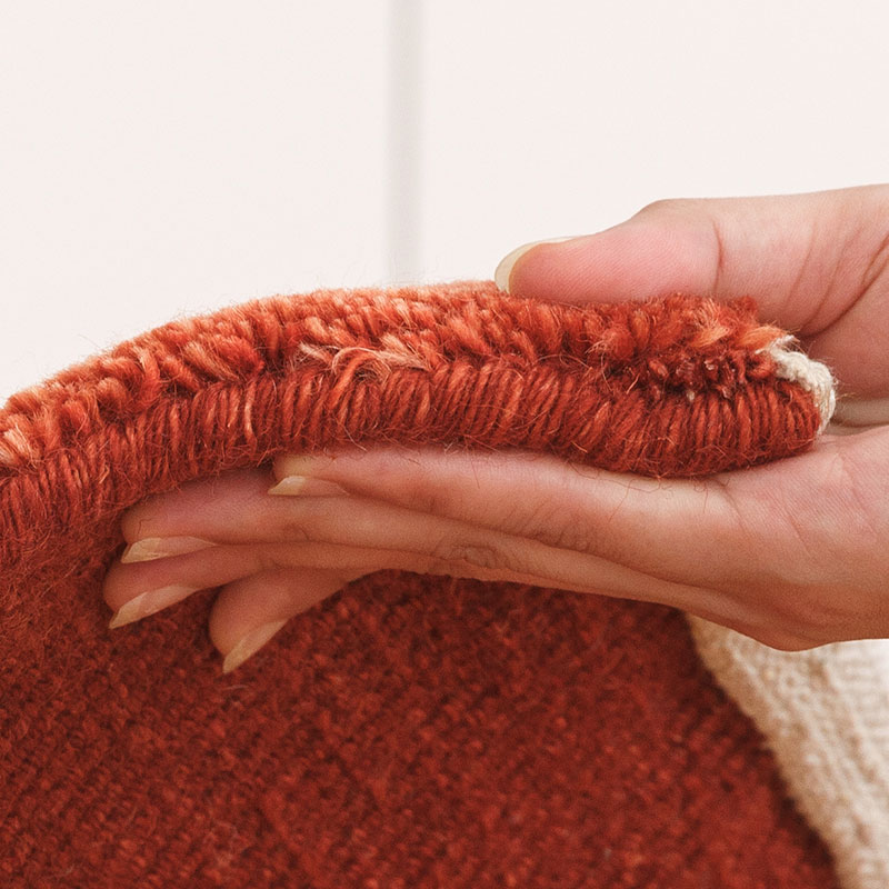 天然素材を手仕事で織り上げるので、糸の撚りや太さも一枚一枚異なります。人間がそれぞれに表情を持つように『ハグみじゅうたん』にも一枚一枚の顔があり表情があります。手間ひまをかけて織り上げていますが、価格はリーズナブルなウール絨毯です。