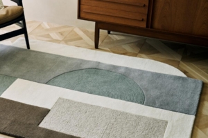 アートを取り入れたようなパターンの幾何学的な形が特徴の「ANDERSEN(アンデルセン)」。デザインラグは、アートのような感覚でインテリアのアクセントとして取り入れていただきたいラグです。シェイプが四角形ではない変形ラグは、デザインを楽しんでいただくだけでなく、空間に余白を生み出すことができ、お部屋を広く見せる効果があります。